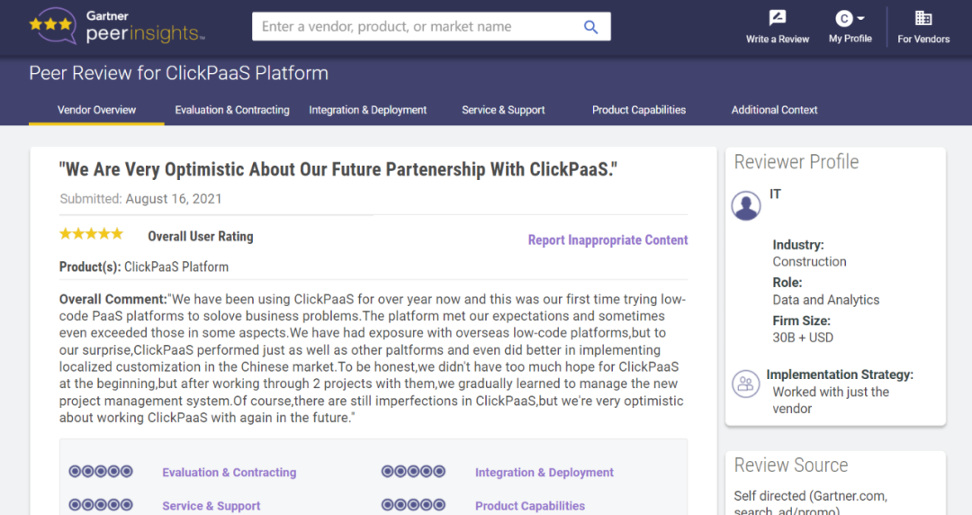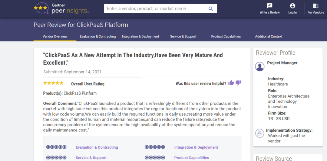 Tips::::【Peer Insights】——用户对企业IT产品和服务发布真实评价的平台。。。目前已有355个市场,,,255,000条经过验证的评价。。。。每一条评价Gartner会针对参评企业营收规模及参评人员信息做验证、、、评价内容做多维核实。。。